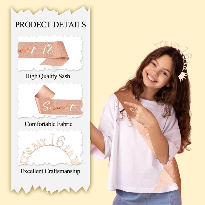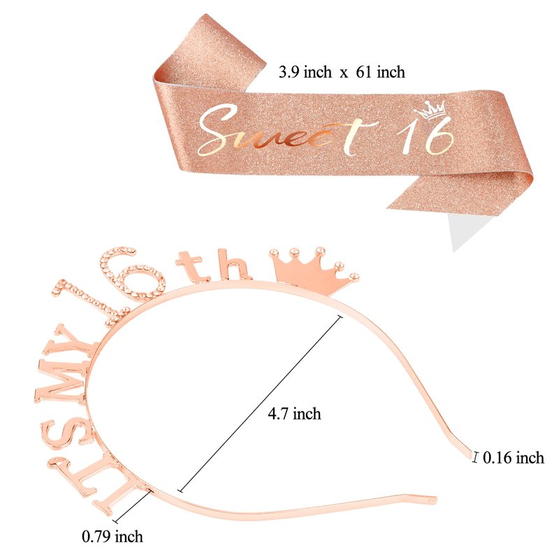 - [Exquisite Design]: The curves of the hair bands fit our heads perfectly, making it easy and secure to wear. The smooth satin sash and dazzling βITS MY 16THβ on the crown ensure you stand out at the birthday party. The little crown logo at the top makes it even cuter to wear.