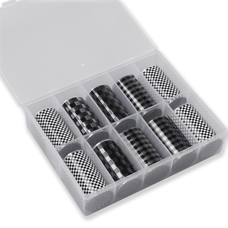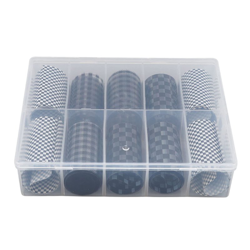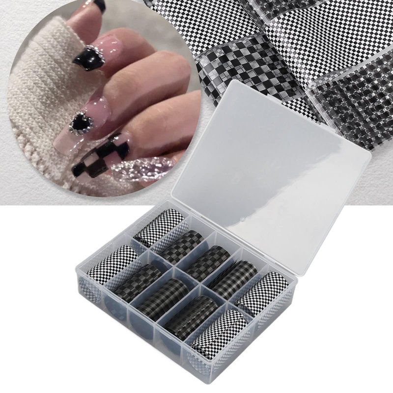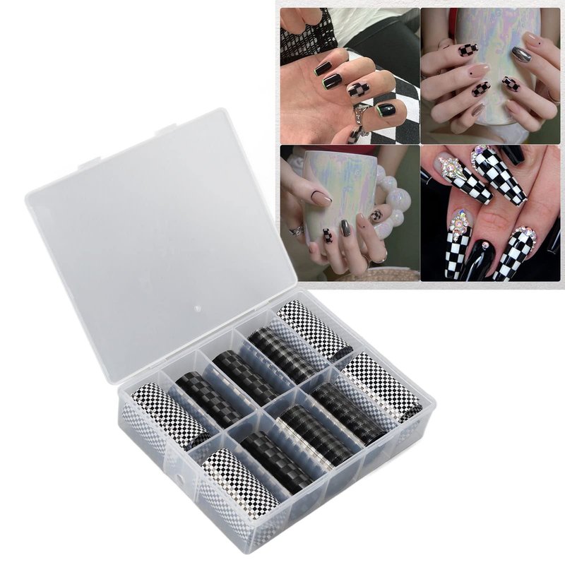 1 Box Nail Foil Transfer Stickers Decals, Print Black White Plaid Nail Art Sticker, Nail Art Design Tool, DIY Nail Art Stickers Decals Decorations Acrylic Nails Supplies for Home and Nail Salon