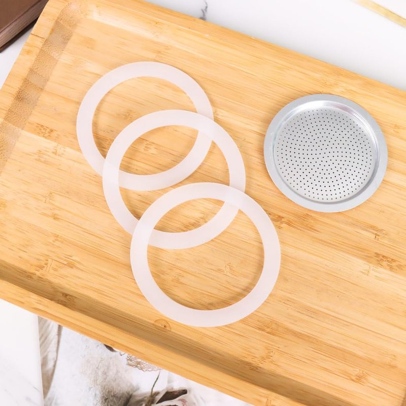 1 Filter and 3 Silicone Gasket Seals Replacement for Aluminium Moka Pot and Stovetop Espresso Coffee Maker (9 Cup)