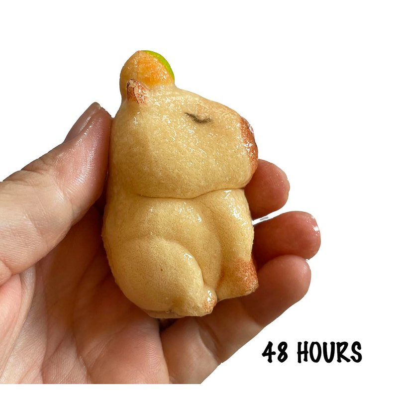 - The tree stump is 3.5" x 2.25" x 2.5" out of the package. Full sized capybara is about 3.5" x 2" after about 72 hours.