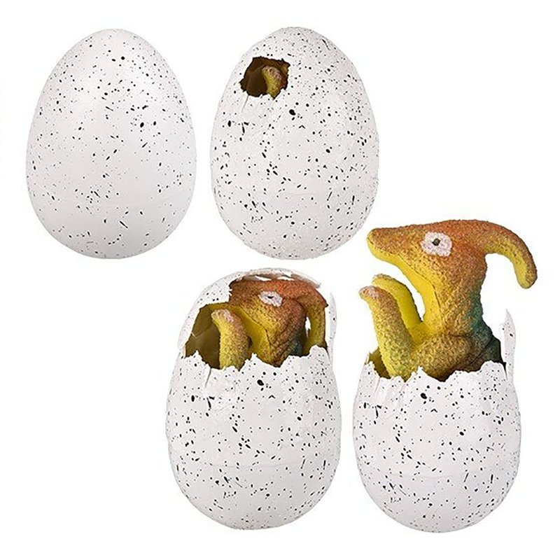 SET OF 1 RANDOM EGG - This dinosaur is one of those grow pets that slowly expand and grow after being submerged with water. Place the jumbo sized 4" x 2.75" egg in water and the prehistoric creature will slowly grow up larger and hatch out of the egg into a random dinosaur. Full grown dino measures about 6.5" x 3.75" x 2". Dry out and use it again. It shrinks with salty water though most shrink simply from air after being removed from water. This is a fun bath or pool toy! Ages 8+. Box measures 5.25" x 3.75" x 3.25". Available in 4 colors. RANDOM STYLE DINO. Please note that these eggs take at least 24 hours of being soaked in water for the egg to start to crack. Animal gets full size at about 48 hours. Expandable water toys or grow-in-water toys are made from a superabsorbent polymer. Superabsorbent polymers are long chains of molecules that soak up tremendous amounts of water because the water is drawn into and held by the molecules of the polymer. These polymers can absorb as much as 500 times their weight in plain water. They are toys that expand after putting them into water for several days.
