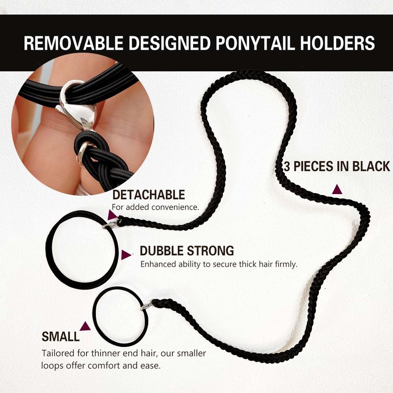 - UNIQUE REMOVABLE DESIGNED BRAIDED PONYTAIL HOLDERS:The sport hair tie can be devided 3 separate parts: large hair tie, long hair tie and small hair tie. You can DIY your favorite hair ties adding to the long thick braided hair wrap ropes based on your hair thicknesss. All metal connects are stainless steel