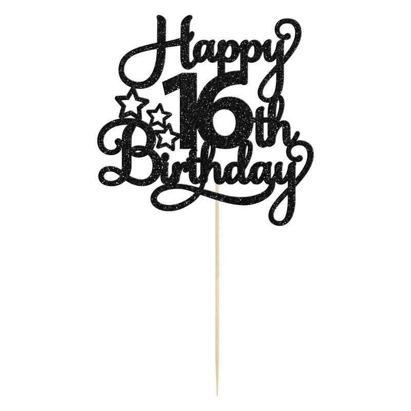 1 Pack Happy 16th Birthday Cake Topper Glitter Sweet 16 Cake Pick Birthday 16th Birthday Cake Decorations for Children 16th Birthday Theme Party Supplies Black