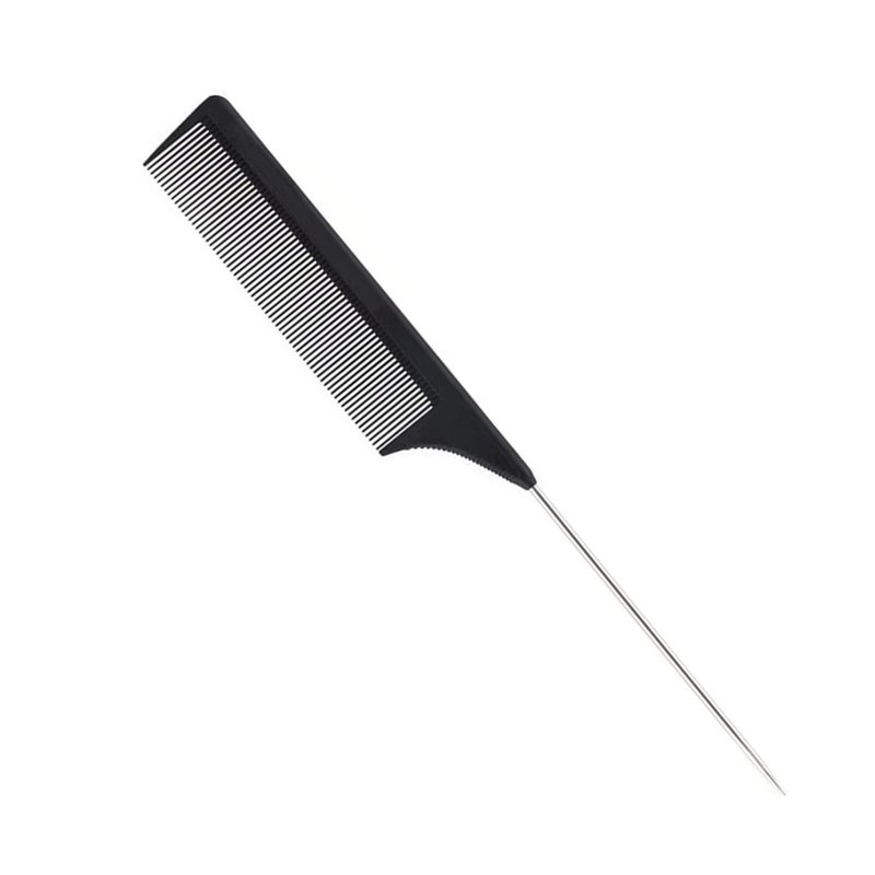 1 Pack Professional Carbon Steel Tail Combs Heat Resistant with Metal Pick, Anti Static Black Styling Tail Hair Comb Fine Teeth, Metal Pintail Teasing Comb Brush