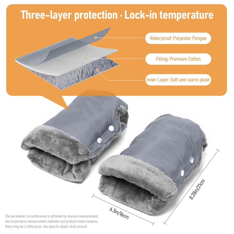 - Easy to Use:30 seconds to complete the installation - Just close a few buttons.It allows you to slide your hands in and out easily while keeping parents hands warm.