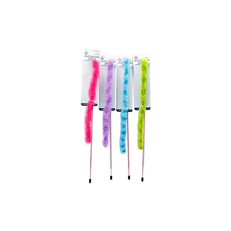With a sturdy wand, a bell, and very colorful plush fabric, this 20" long toy provides excellent aerobic activity. It is a safe interactive toy for kittens and cats of all ages! Now with a fun selection of colors: light blue, light green, pink, and light purple.