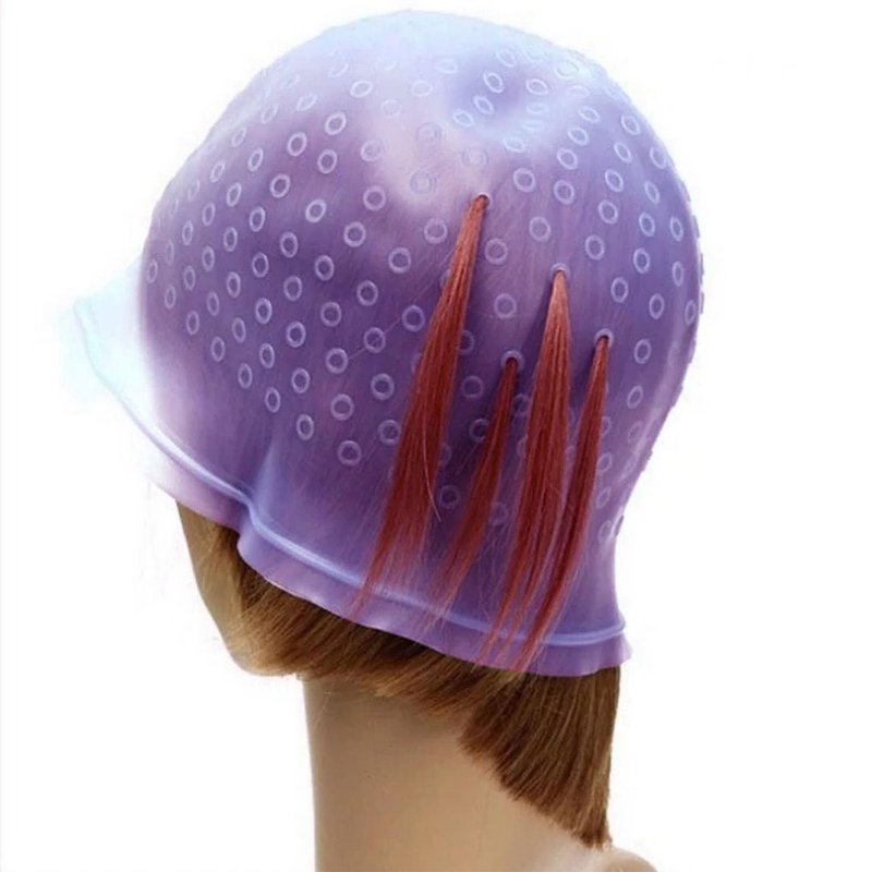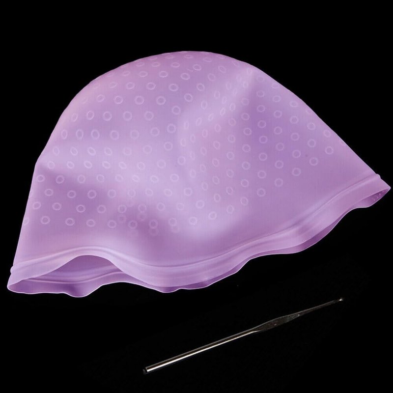 1 Pc Purple Reusable Silicone Hair Coloring Highlighting Cap, Hair Dyeing Cap for Hair with Hook for Hair Coloring Salon Hairdressing Tool