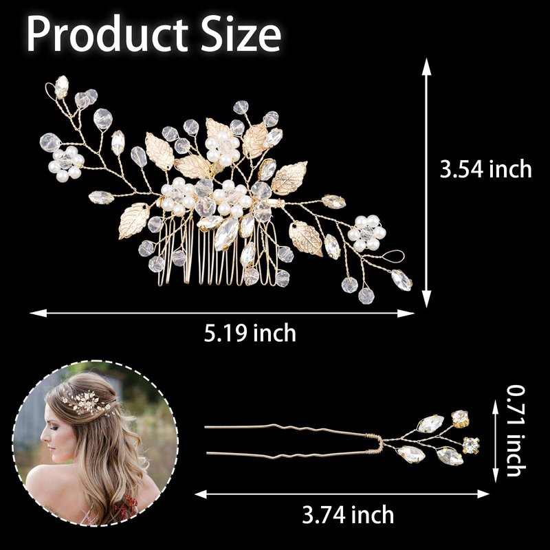 - Package include: You can receive 1 pcs crystal hair comb and 2 pcs rhinestone hair pins.The size of the hair comb is about 5.19 x 3.54 inch. The size of the hair pin is about 3.74 x 0.71 inch. You can adjust the flexible wire on the hair comb and hair pins,making them fit better