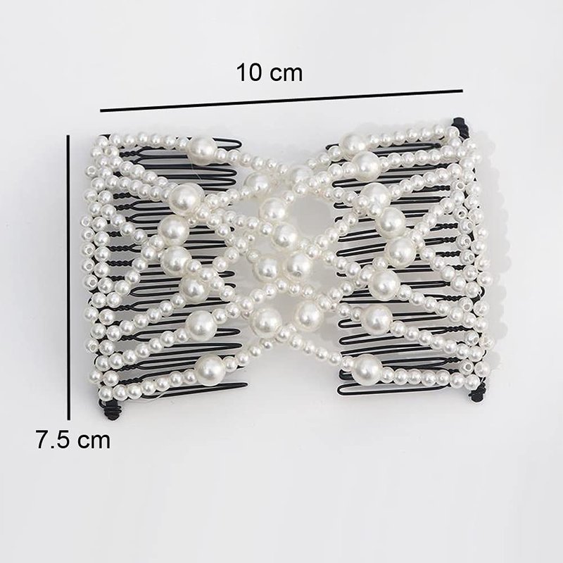 1 Piece Adjustable Elastic Hair Comb Stretchy Pearl Bow Double Comb Banana Hair Clip Beaded Hairpin Hair Accessories for Women Curly Thick Hair Ponytail