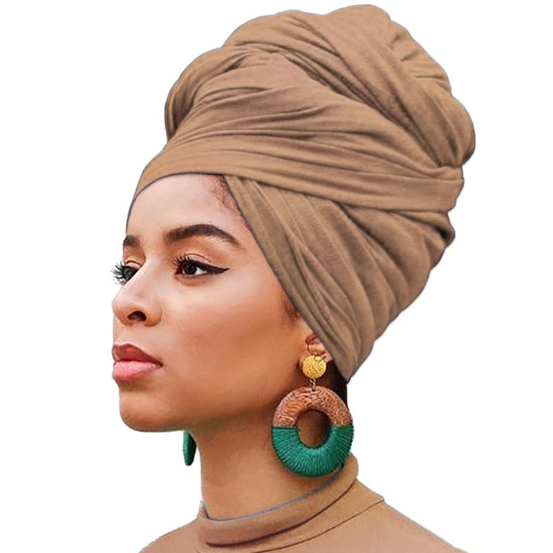 1 Piece Head Wrap Stretch African Turban for Women Fashion Headwear Extra Long Hair Scarf Caps Bohemian Headwraps Soft Breathable Turbans Tie (Camel)