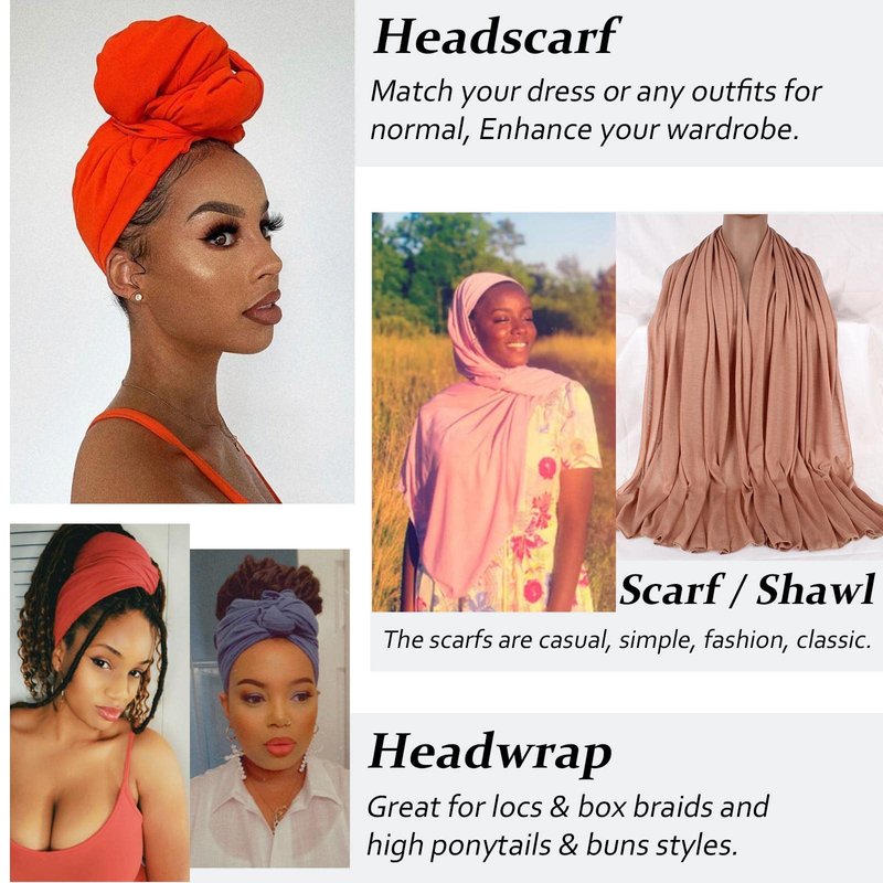 - Design:Solid color design makes it easier to pair with other clothes,which can be applied as turban,scarf and shawl,suitable for a variety of hair styles and offering proper styling,will make you feel and look beautiful. Our headscarves are easy to knot and do not require special skills.Just wrap the head,put away the hair ends,and the elastic headscarf can be firmly fixed.
