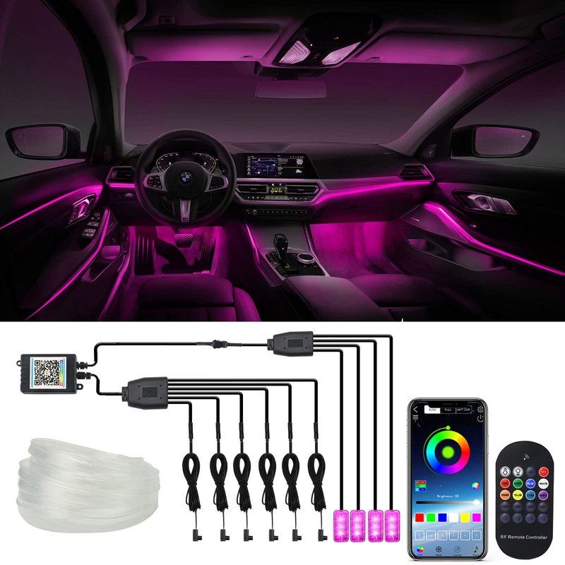 - 【Upgraded 10-in-1 Car Ambient Light】 This interior car LED light consists of 6 fiber optic lights and 4 under dash lights, and has 315-inch fiber optics, which can be flexibly installed in any car.