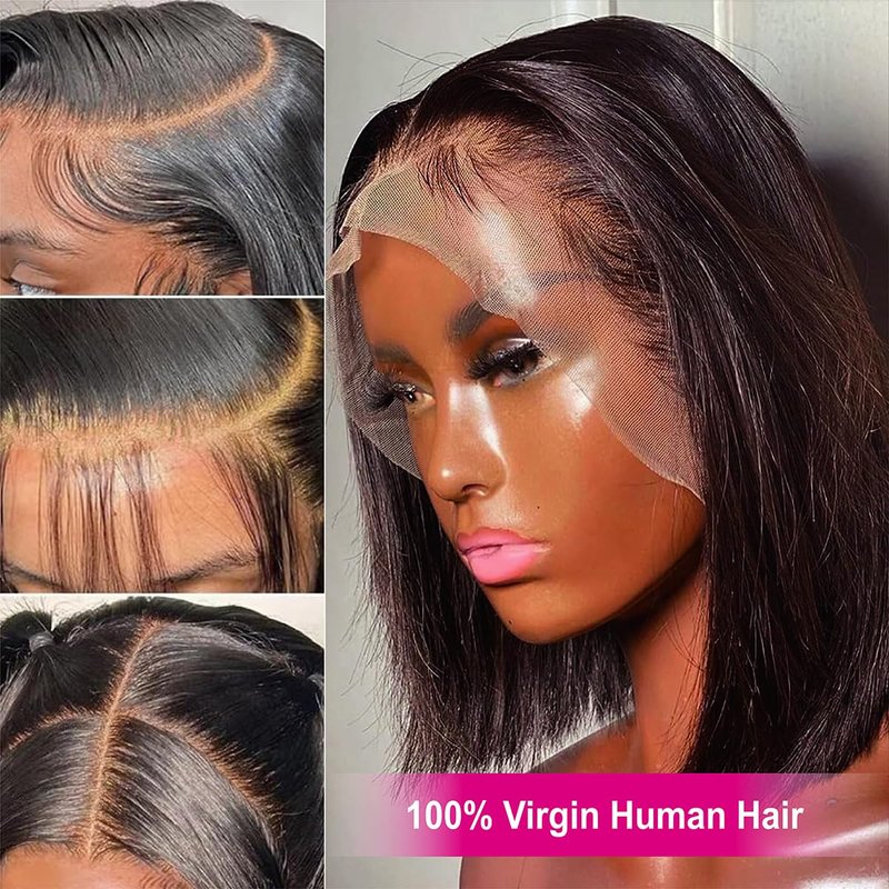 - 10 inch Bob Wig Human Hair Material:180% Density short straight bob wig human hair blunt cut. 100% unprocessed brazilian virgin bob wig human hair 13x4 frontal lace wig. The glueless bob lace front wigs human hair no blend,healthy and natural