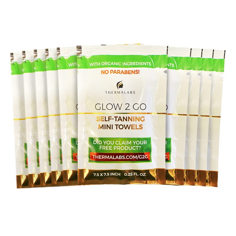 Organic self-tanners are a safer alternative to sun-based tanning and artificial tanning beds. But there are so many sunless tanners that finding the right blend for a superb faux-glow can be challenging. The Thermalabs Glow2Go disposable tanning towelettes were designed to remove the doubt out of self-tanning. Each towelette in our Super Pack is designed with healthy organic ingredients. Simply wipe the towelette on your skin and you should have a beautiful faux glow in just a few hours. Thermalabs Glow2Go towelettes make tanning easier for beginners, travelers, and anyone who does not have the time for a full-blown sunless lotion application. Made-for-you tanning towels Get the aesthetic faux glow you’re looking for with minimal effort. Read more Look Dope All Season Long! Are you stuck with a pale skin during winter? Or normal white skin while at the beach? Change the plan with Thermalabs Glow2Go. Make each day out great by hacking a glorious tan from the comfort of your home. Each tanning towelette features healthy active ingredients that induce a tan within just a few hours. What’s more, you don’t have to struggle with messy hands or spend hours on the application. Hygienic, Easy-to-Use Getting a tan doesn’t always have to be a hassle – with uneven streaks and messy hands. Glow2Go is the hygienic, easy-to-use, and completely friendly tanning towelette. Travel-Friendly Compact, travel-friendly pack of self-tanning wipes for on-the-go use. Simply stash a few in your travel bag and secure your authentic faux glow as you please. Quick Results Preparing for travel, a Saturday evening hangout with friends, or a day out at the beach? Catch your tan quick with the Thermalabs Glow2Go pack of on-the-go tanning wipes.
