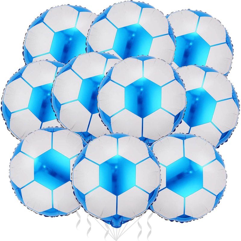 - Package Included:10Pcs 18 inch Blue Soccer Balloons (uninflated) + 1pcs Straw +1pcs 32 foot Ribbon Roll