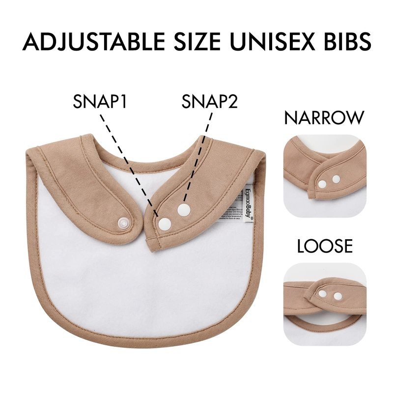- ADJUSTABLE YKK SNAPS — Each baby drooling snap bibs comes with 2 YKK snaps which provides different sizes as your baby grows,suitable for newborns and toddlers.This feeding snap bibs set recommended age range from 0 to 36 months.