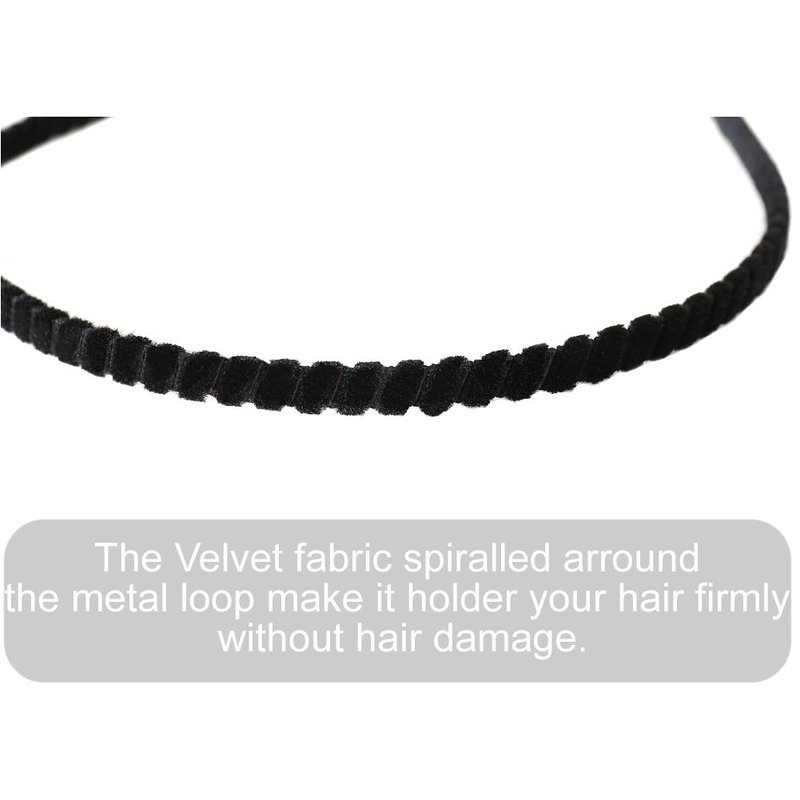 - Material: The hard headbands are well made of elastic but durable iron metal( NOT fragile plastic), covered by velvet cloth fabric, which grips the hair tightly, is better soft and comfortable than satin ribbon fabric, and no hurt to hair.