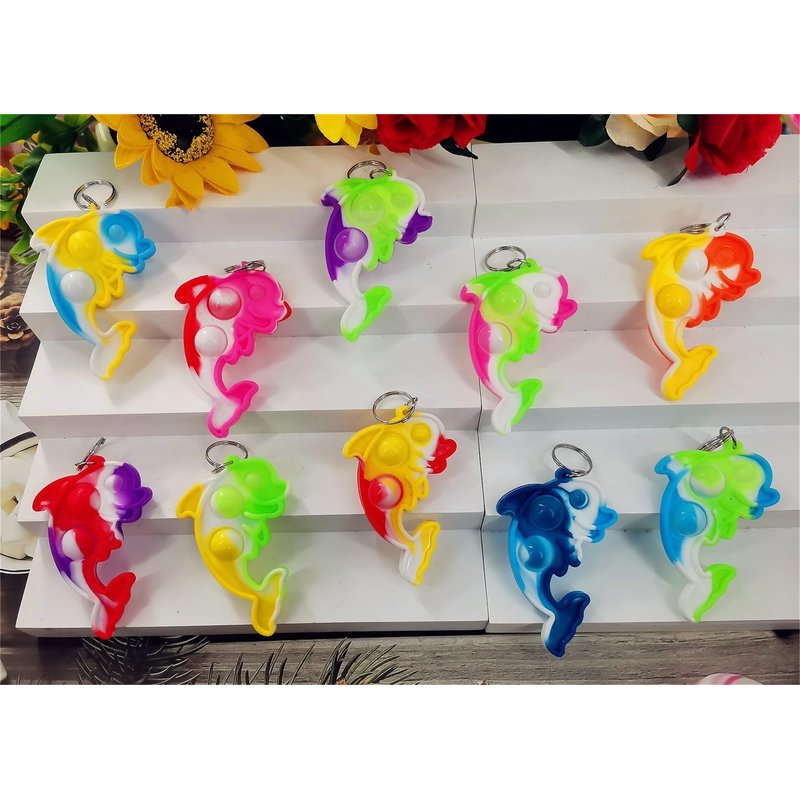 - 2:Package included: 10 packs Bulk small dolphin Mini pop fidget keychain party favors,Size:3.0*2.0*0.3 inch.Random color to send