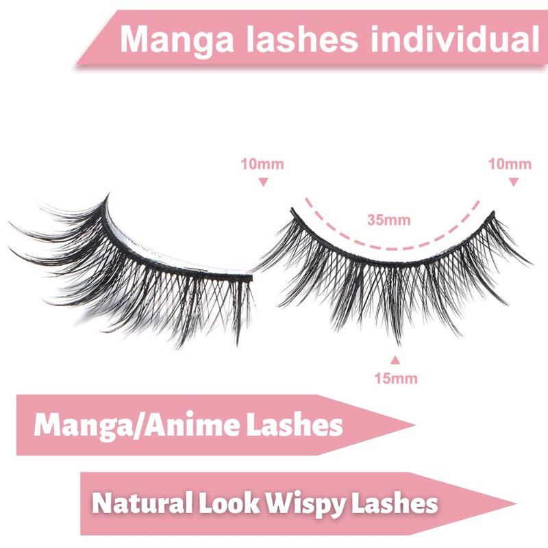 - HIGH-QUALITY: Each pair of our manga-style eyelashes is made from premium synthetic fibers, enduring, lightweight, reusable, and not easy to shed. The clear lash band blends seamlessly with your natural lashes, providing a flawless, natural look that is perfect for any occasion