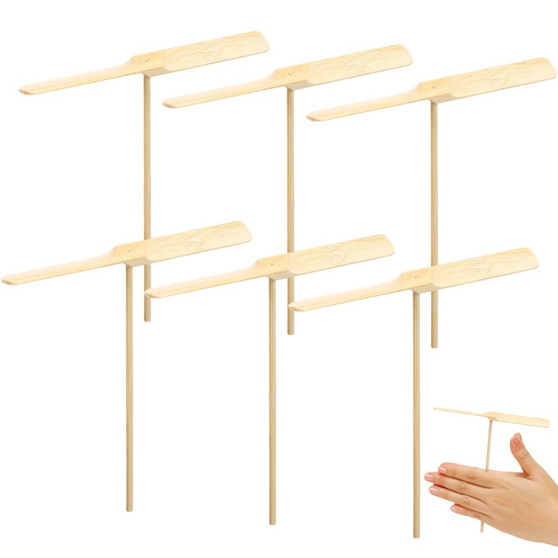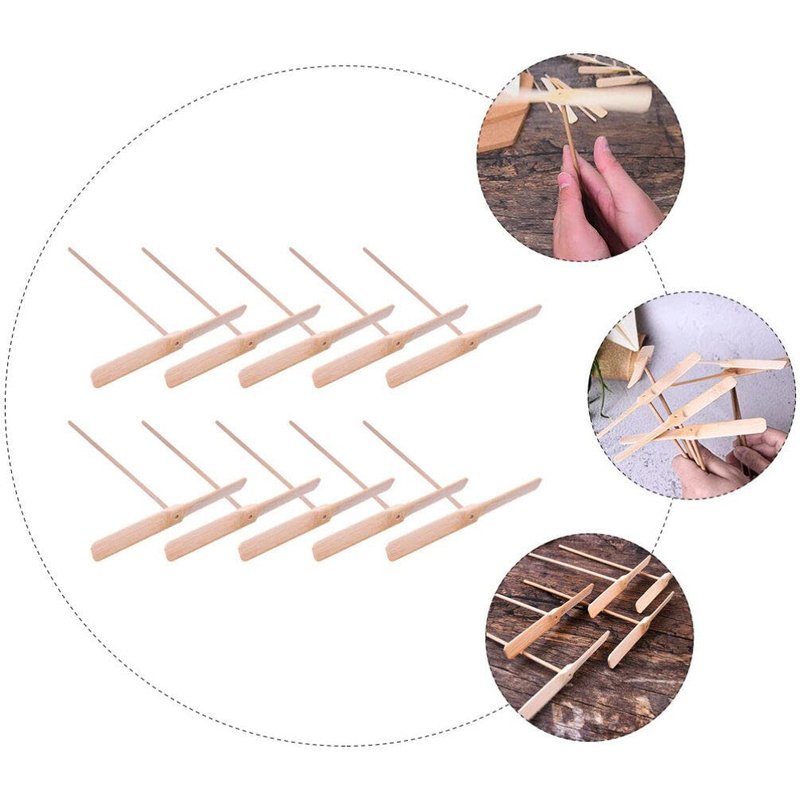 10 Pcs Bamboo Dragonfly Wood Toys Propeller Stuffed Dogs for Airplane Party Favors Flying Spinners Fly Copter to-y Outdoor Drawstring Wooden