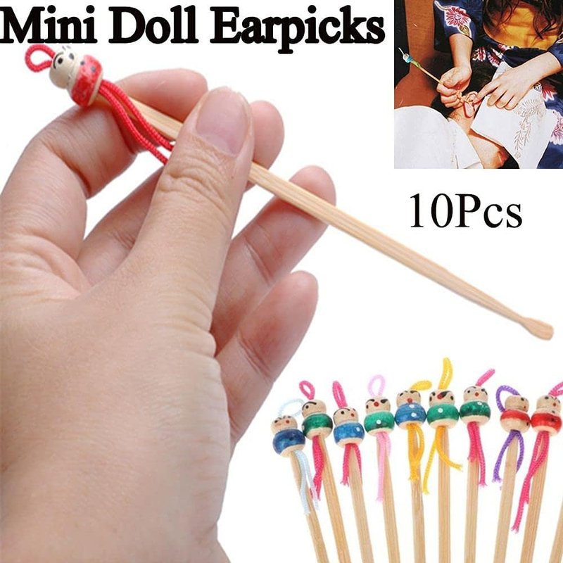 10 Pcs Bamboo Ear Cleaner Ear Picker with Cute Doll Decor, for Adult Children Ear Care, Ear Wax Remover Cleaning Tool