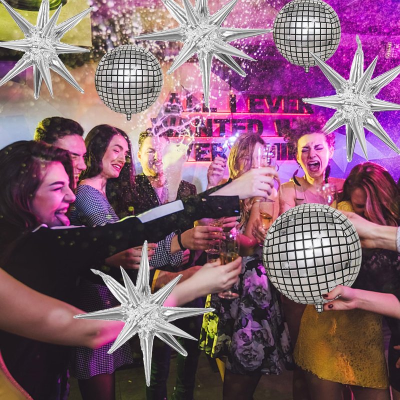 - 【High Quality Material】These disco ball balloons and Explosion Star Foil Balloons are made of aluminum foil, Quality and durable materials make the balloons look shiny and delicate. You can combine these beautiful disco-themed balloons with other latex balloons to add color to the party. The balloon stars are practical, reusable, and do not leak easily.