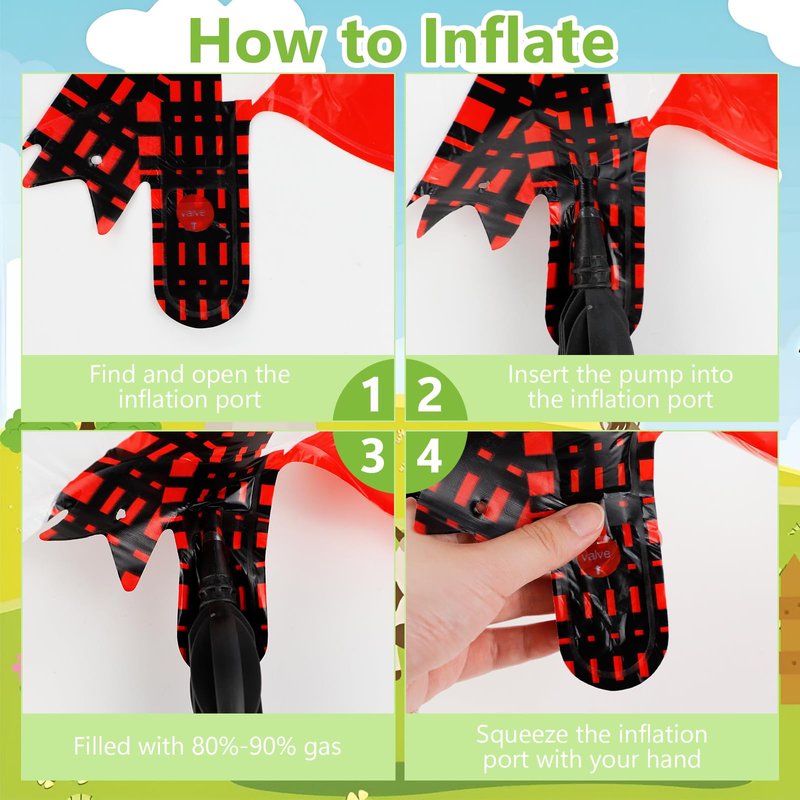 - 【Easy to Inflate & Deflate】You just need to use a pump to fill 80%-90% air or helium into it, and squeeze the inflation port with your hand to complete the self-adhesion. Be careful not to overfill the gas to prevent the balloon from exploding. After the party, you can deflate it with the help of a straw and save it until the next use.
