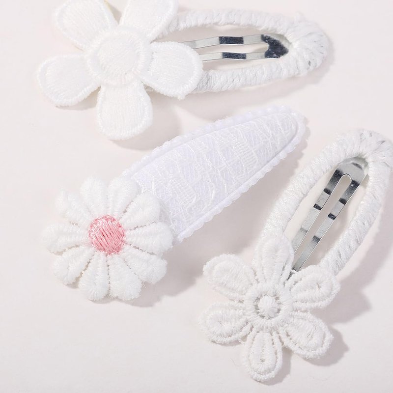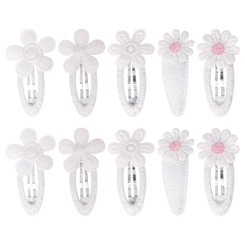 10 Pcs Girls Fabric Wrapped Hair Clips Flower Snap Barrettes White Daisy Hair Pins Hairpins Cute Toddler Hair Barrettes Clips Hair Accessories for Kids Children