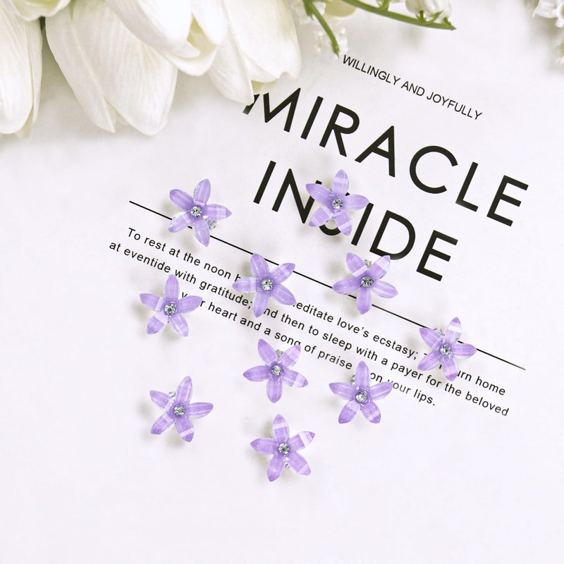 10 Pcs Mini Flower Hair Clips with Rhinestone, Cute Flower Hair Pins, Small Hair Clips for Fine Hair, Wedding Bridal Hair Accessories Barrettes Decorative for Women Girls(Purple)