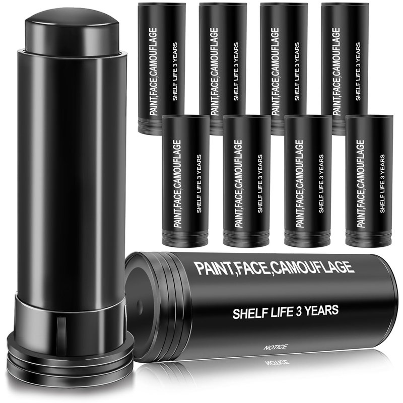 This is a 10 pcs set of sports black eye sticks. They are solid black color with a creamy paste texture that is very easy to apply. Just the right diameter to mold under your eyes in one stroke. Waterproof and sweatproof, the color is long-lasting, so you can run around the sports field to your heart's content. You can also use it as a face painting pen to show your personality at special parties.