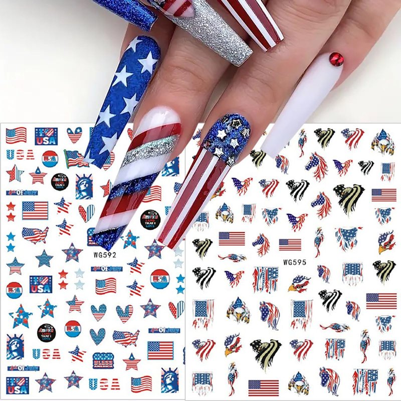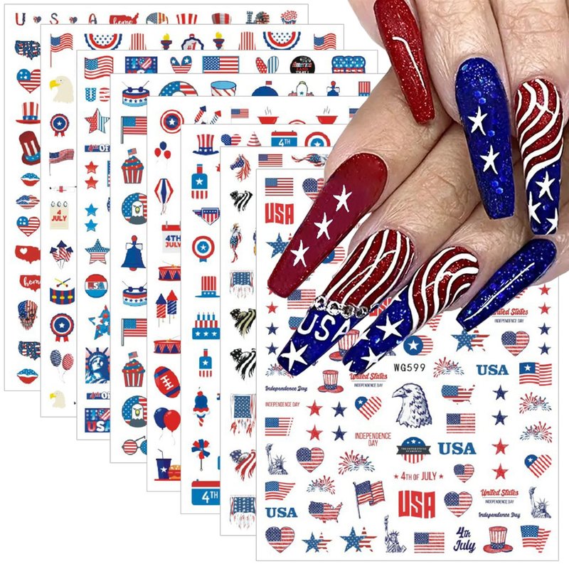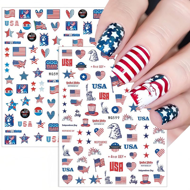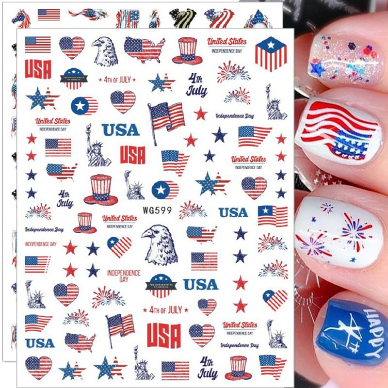 - Easy to Use: 4th of July nail decals are self-adhesive, Just use tweezers to peel self-adhesive nail stickers and stick decals on your nail. You can also use nail gel to cover to make the beautiful stickers last longer.