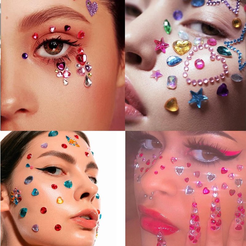- [Widely use]:These self-adhesive face gems stickers can be applied on eyes, face, arm, belly, body, and nails as art decorations to make you have more charming looks, they are also better for clothes, phone, bags, shoes. They can match with various of makeup and look, ideal for rave, carnival, festival, parties or other occasions.