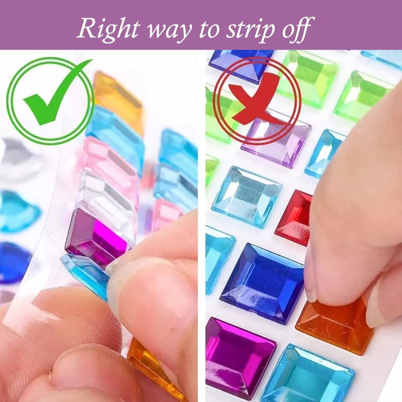 - [Easy to use]:1. Clean the wanted paste place and make sure it is dry; 2. Peel the face jewels off together with glue behind it(please note that the gems are in a ready to paste pattern, but you can cut them apart to customize your look); 3. Directly paste to your face or body and press face gems to suit your face or body gently. You also can use eyelash glue to enhance the stickiness for avoiding fall off.