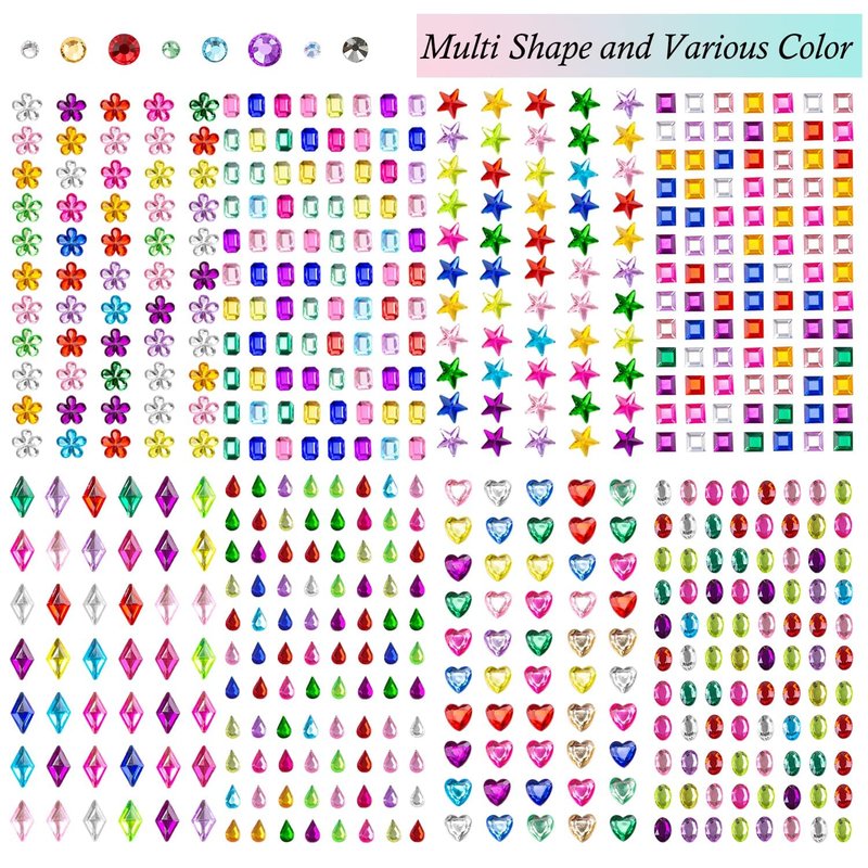 - [High-quality Materials] The rhinestone stickers are made of quality acrylic. These gems are multi-faceted and evenly cut, featuring glitter and colorful appearances, twinkling and shiny. They will reflect different colors when in the light of different colors. You will look more charming and gorgeous with these shimmering face body gems.