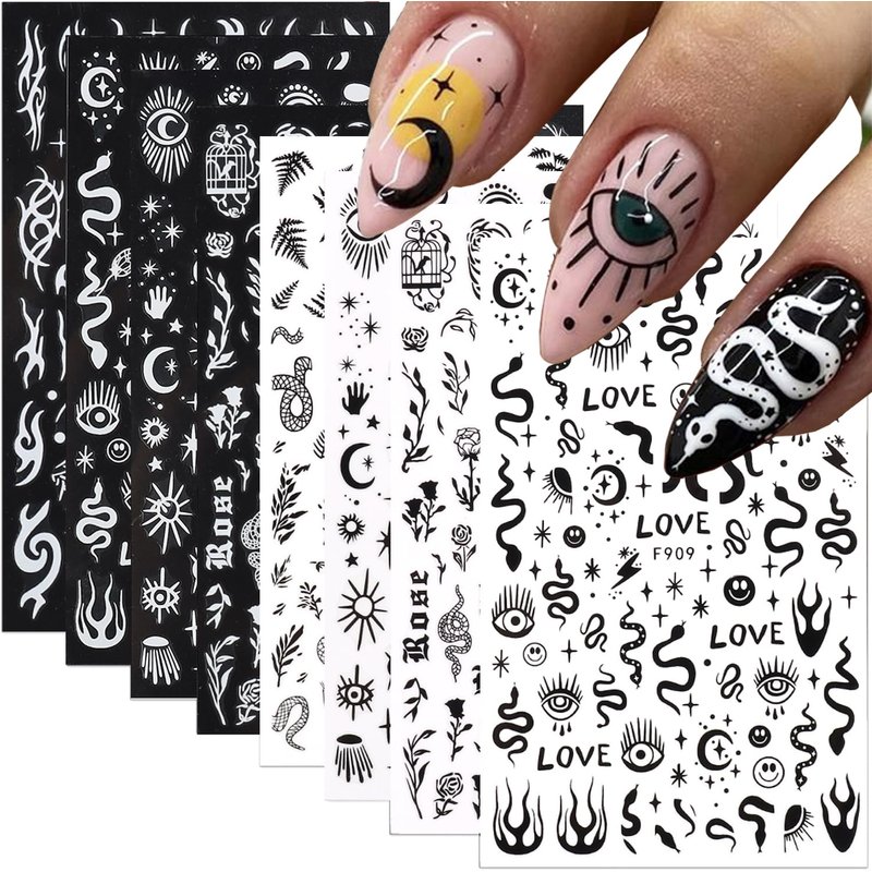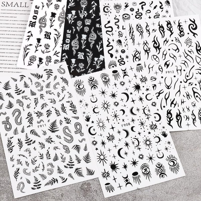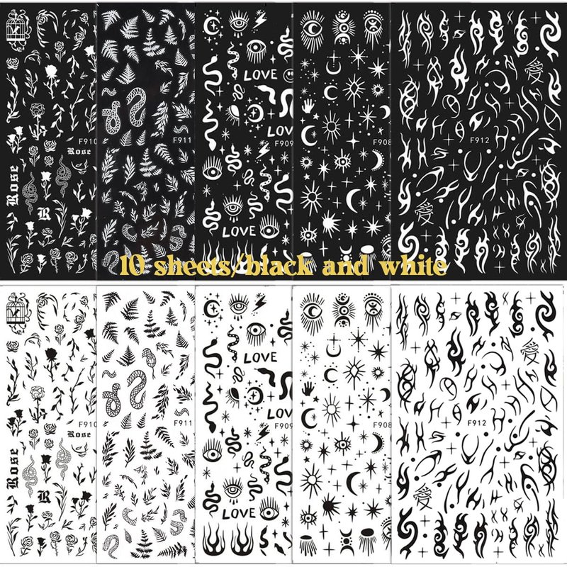 Nail Stickers: you will get 10 sheets of black and white nail stickers decals, leaves, flowers, snakes, stars, moon nail pattern decorations, it provides you with a variety of choices, give full play to your rich imagination of nail DIY.