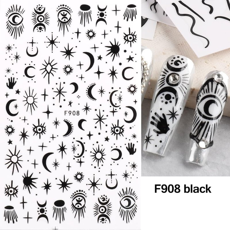 - WIDELY USED: 3D moon star nail art decals will be the best gift for female friends, mom, wife. Black nail decal design is perfect for your fingernails and toenails decoration, great for home nail art DIY and professional nail salon.