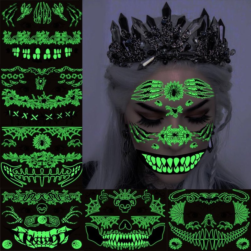 These glow-in-dark tattoo stickers are suitable as Halloween-themed celebrating party supplies. You will become the most dazzling existence in the dark.