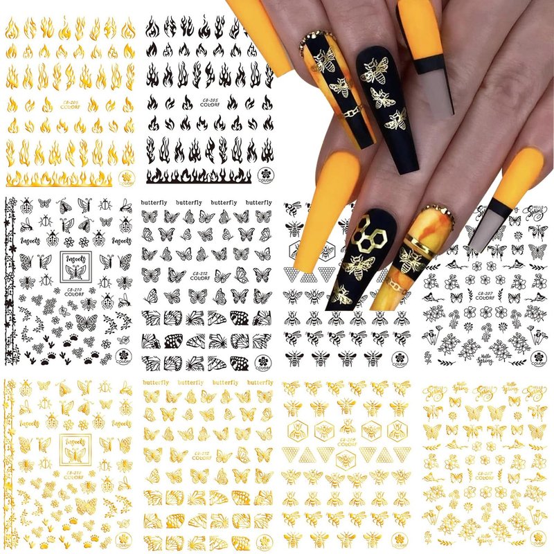 - 【Package Quantity】You will get 10 sheets of mixed bee butterfly pattern nail art stickers decal , flame design self adhesive nail stickers, various pattern for your choice. It will meet your needs on various occasions.