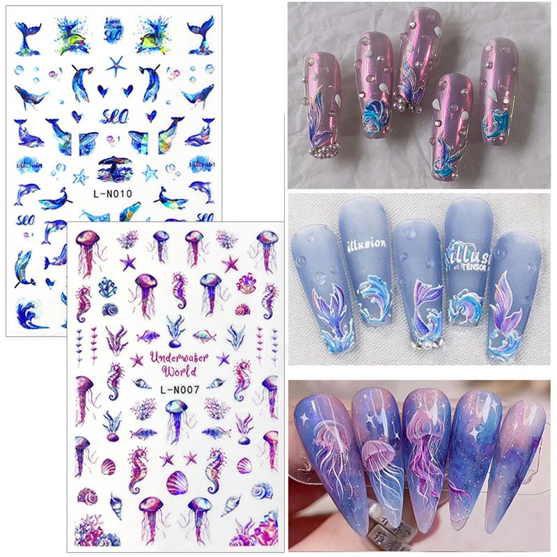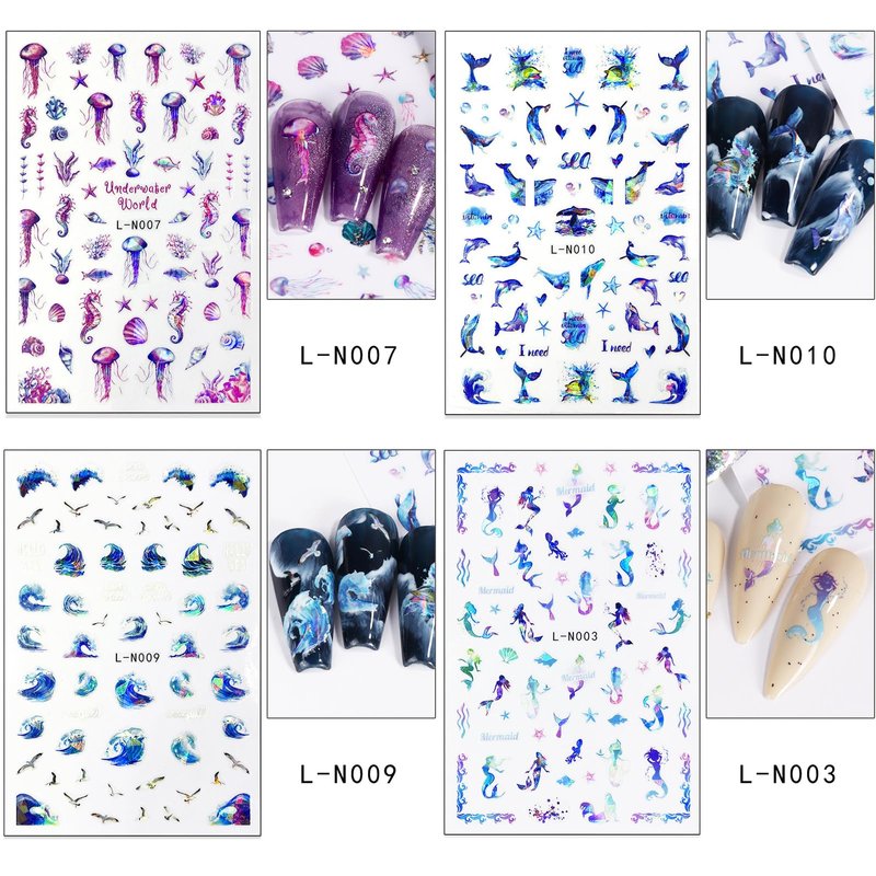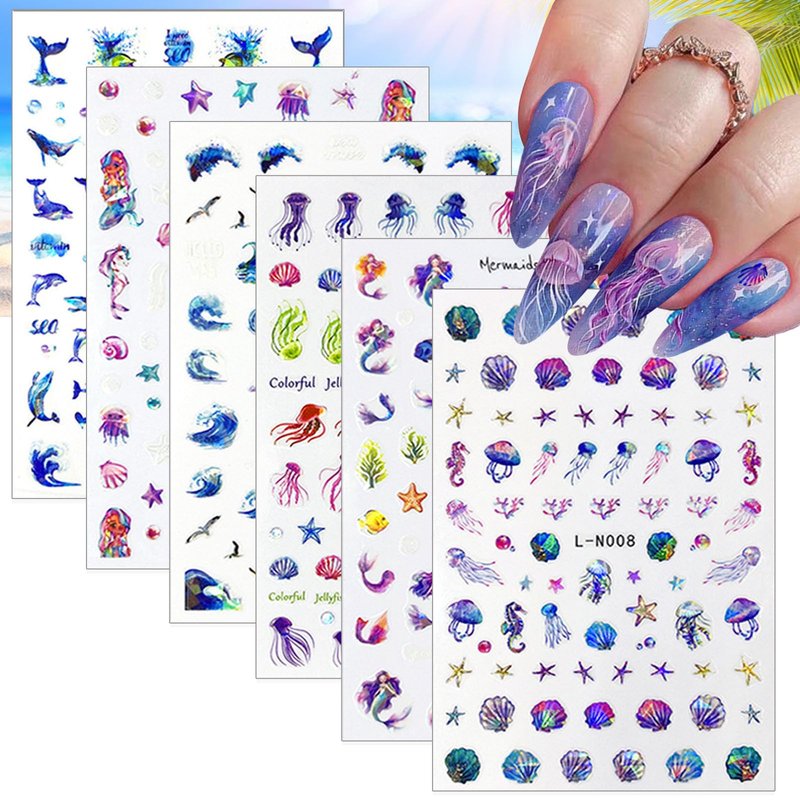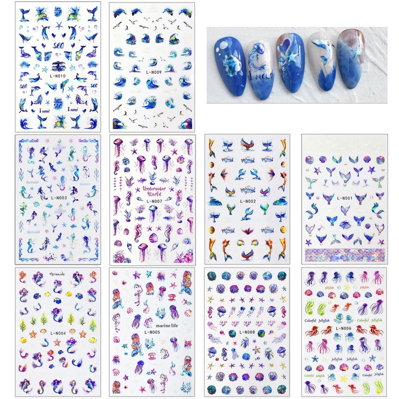 - ☀【Package Contain】You will get 10 sheets delicate marine organisms nail stickers, Nail art stickers of ocean series are designed with many ocean and beach elements such as mermaid tails, waves, shellfish, starfish, pearls, fish scales, etc. This set of ocean stickers with various patterns and rich colours is perfect for summer and beach themed nail designs.