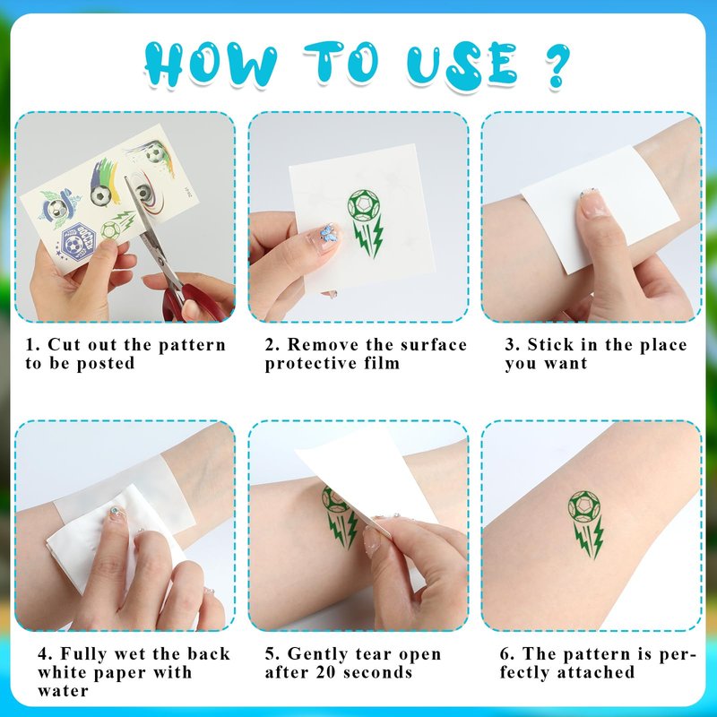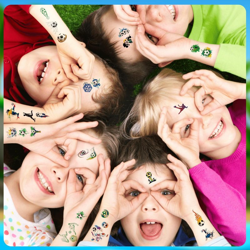 - Party Decoration: In addition to serving as personal decorations, these football tattoo stickers can also be used as decorative elements for birthday parties and other celebratory events. Posting them as party gifts to guests can add a strong football atmosphere and festive color to the party. Let children spend an unforgettable football themed birthday party in a joyful atmosphere.