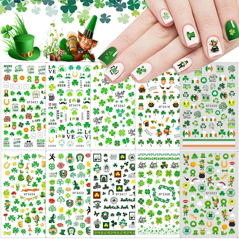 - ☘【St Patrick’s Day Nail Stickers】You will get 10 sheets St Patricks Day nail art stickers, Lucky Irish nail decorations provide you with a variety of choices, give full play to your rich imagination of nail DIY.