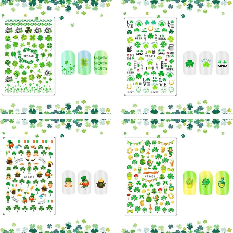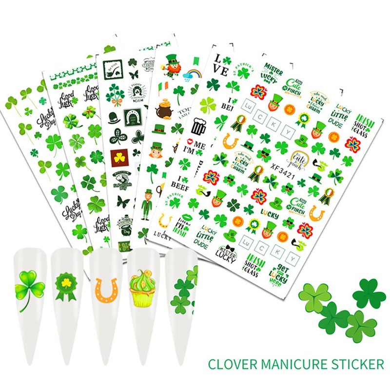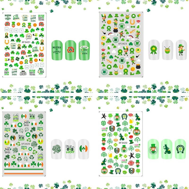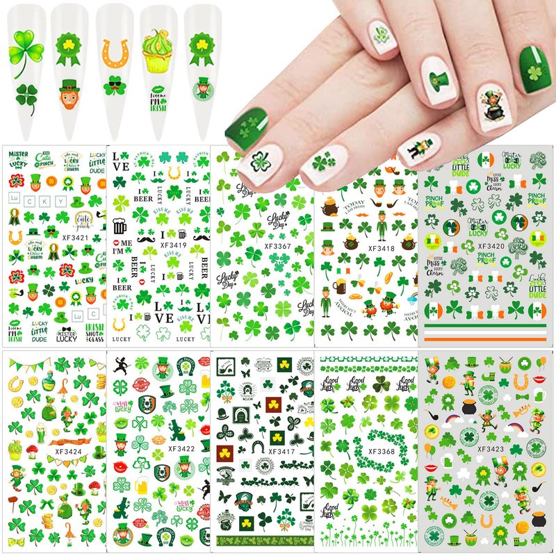 10 Sheets St Patrick’s Day Nail Art Stickers Decals 3D Shamrock Nail Stickers Green Clover Irish Nail Decals St Patricks Day Nail Decorations for Women Kids Girls Nail Charms Accessories
