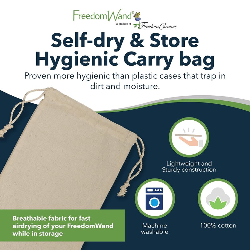 - DISCREET & PRIVATE - Our cotton Carry Bag offers more privacy than transparent bags, allowing you to carry your FreedomWand with discretion. Carry your FreedomWand with confidence and dignity with our travel storage bag.