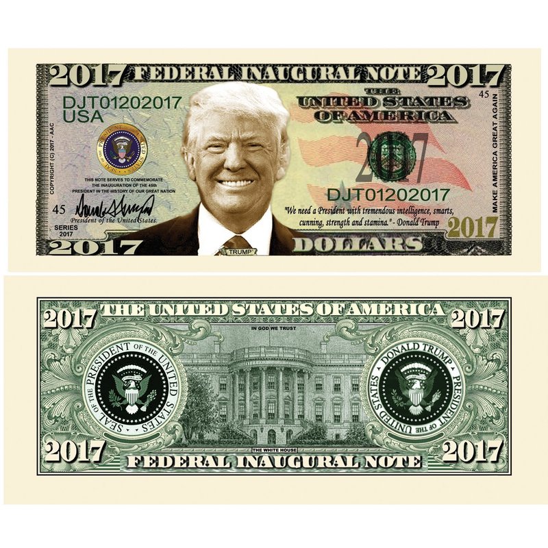100 Donald Trump 2017 Federal Inaugural Presidential Dollar Bills Limited Edition with Bonus “Thanks a Million” Gift Card Set