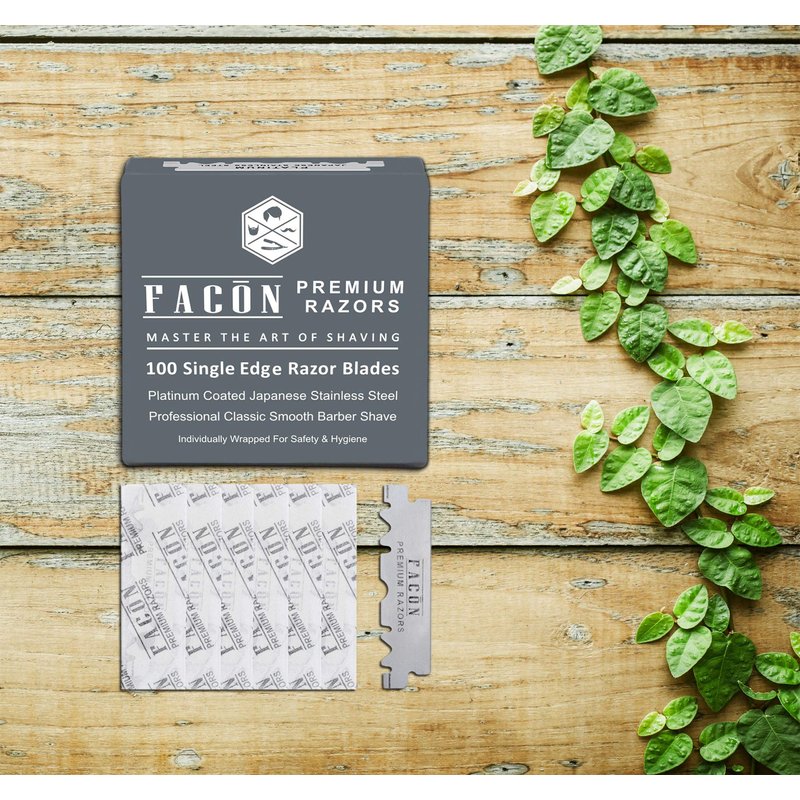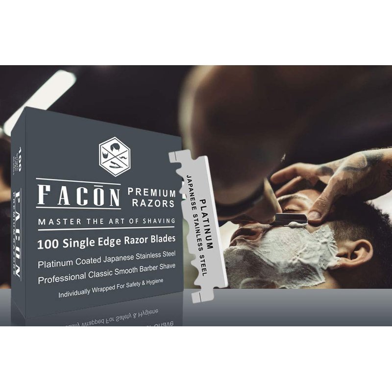 100 Facón Platinum Japanese Stainless Steel Single Edge Razor Blades for Professional Barber Straight Razor - 200+ Shaves