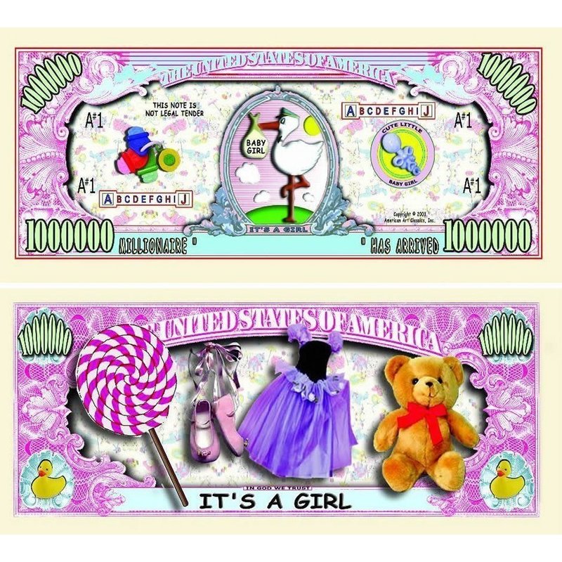 100 It's A Girl Million Dollar Baby Bills with Bonus “Thanks a Million” Gift Card Set