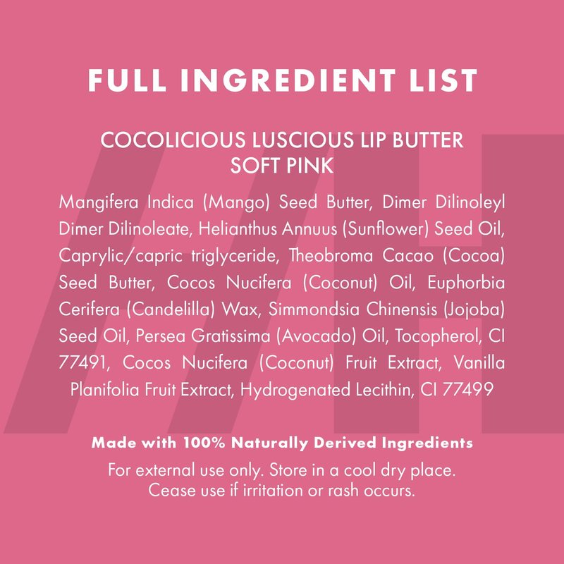 Handmade Heroes Cocolicious Luscious Natural Lip Butter in Light Pink - deep conditioning lip moisturizer that revitalizes lips. Petroleum free and 100% Natural vegan lip moisturizer that's gentle for daily use & any skin type. Clean skincare sustainably made with ingredients Hyaluronic Acid, Mango Butter, Avocado Oil & Jojoba Oil - intensive moisturizing lip mask for smooth fuller lips. Safe for sensitive skin. Apply a pea-sized amount as a dry lip moisturizer, lip conditioner for dry lips, natural lip enhancer, nighttime lip plumper, sleep lip mask. Use as lip primer, overnight lip mask or lip gloss, suitable use with lip brush. Intensive moisture lip therapy for dry lips to severe dry lips. Lip night mask that's great to use with lip scrub, lip exfoliator, lip peel, lip polish & lip makeup. A great alternative for lip balm, lip butter, lip glow oil, lip moisturizer, chap stick or lip serum. Great over lip tint, lip stain, lip mattes or lip stick. Plant based sleeping lip mask hydrating moisturizer that help reduce lip lines appearance, lip lightening & prevents severe dry lips. Lip masks skincare ideal for mothers day gift ideas & teen party favors . Handmade Heroes self care products & personal care products are PETA vegan and cruelty free. Best lip repair vegan beauty products & best skin care products for women. All season skin care essentials for skin care travel kit, lip care kit, skin care kit & facial care routine. Lip care for dry lips by Handmade Heroes - fragrance free, all natural - NO petroleum, parabens and synthetics.