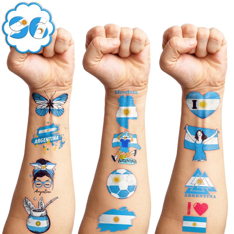 - Widely used: Argentina Soccer Flag Football Blue Argentinian Temporary Tattoos pieces are suitable for many occasions such as birthday party supplies, party decorations, party favors, party bags, DIY decorations, pool and the beach or gift. Temporary tattoos are the best party favors and goodie bags fillers ever for any kind of celebration!