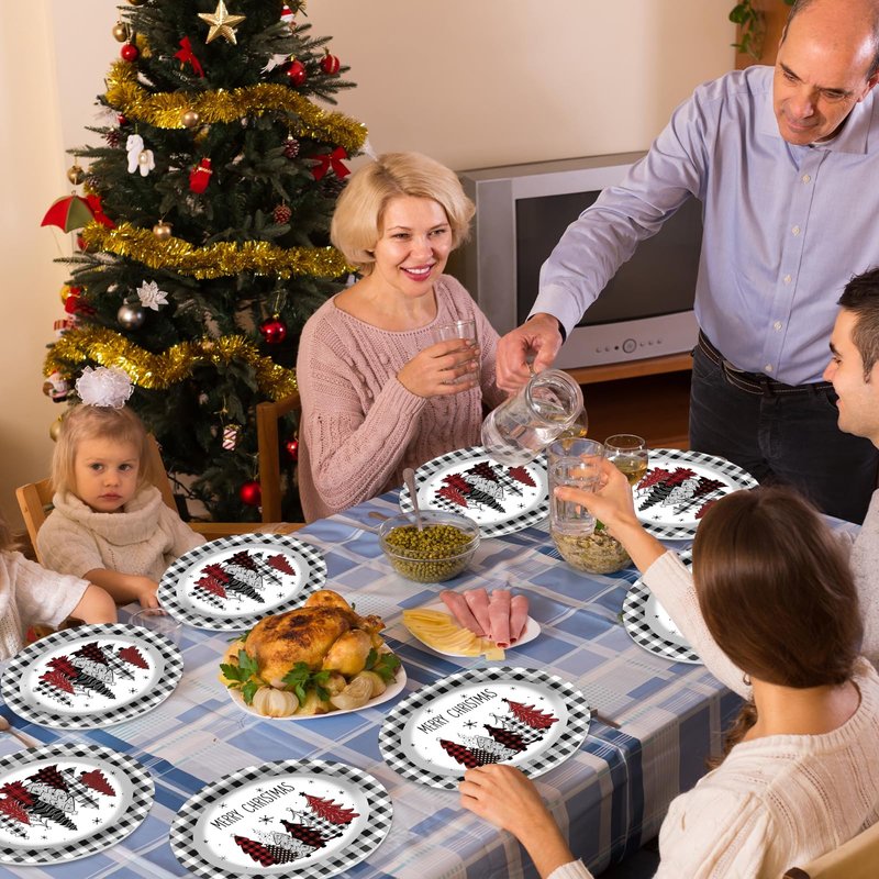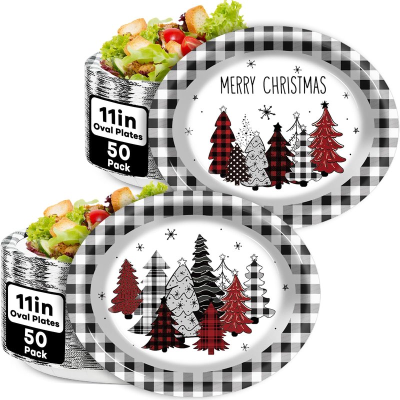 - Premium quality and printing: Made of thick, durable cardboard, our Christmas tree buffalo plaid oval dinnerware set is designed to be sturdy and reliable. This high-quality material supports more foods, and the Xmas serving dishes are printed with premium water-based ink to enhance your guests' dining experience.