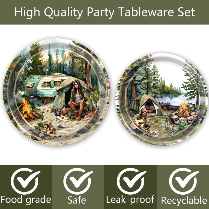 - Many Occasions: Camping Bachelorette party dinnerware are great to decorate Camp Bachelorette party, Camping Adventure party, Bachelorette Happy Camper party, Camp Out Campfire Forest Nature Hiking Camper themed party, etc